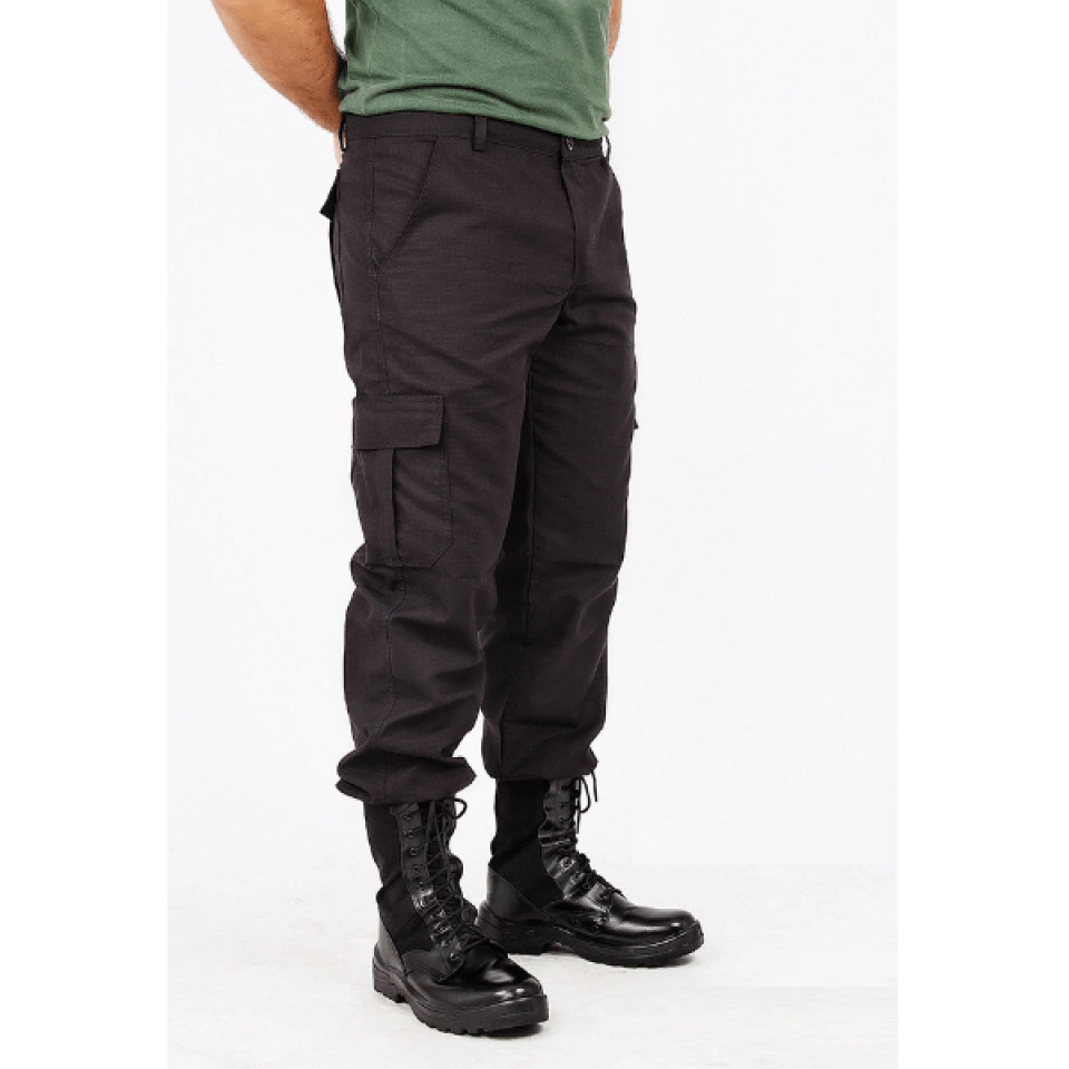 A Calça Tática em Ripstop é confeccionada exclusivamente com tecido Rip-Stop CEDRO®, atendendo aos grupos de operações especiais. Possui 06 (seis) bolsos: dois frontais, dois laterais e dois traseiros; reforço nos joelhos e zíper especial de alta resistência.