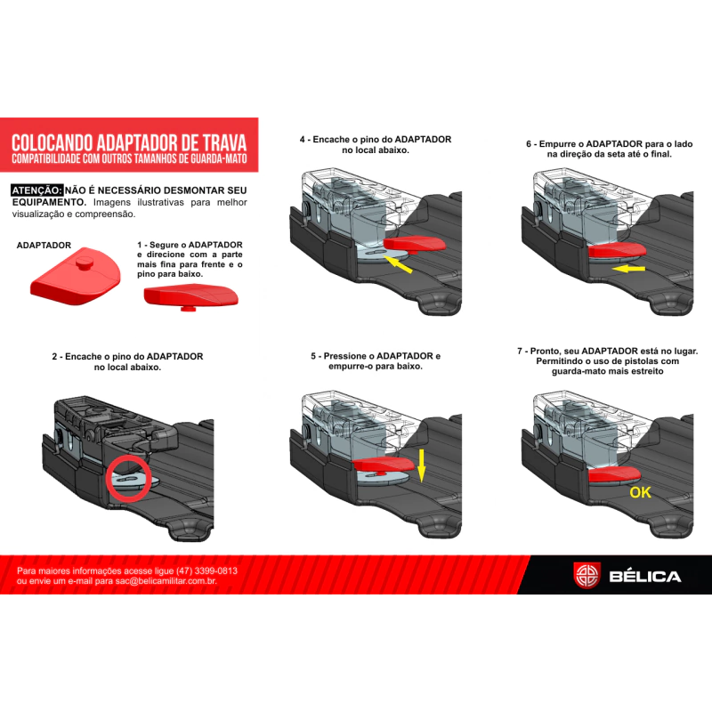 Adaptador para ajuste da trava, compatibilidade com outros tamanhos de guarda-mato;