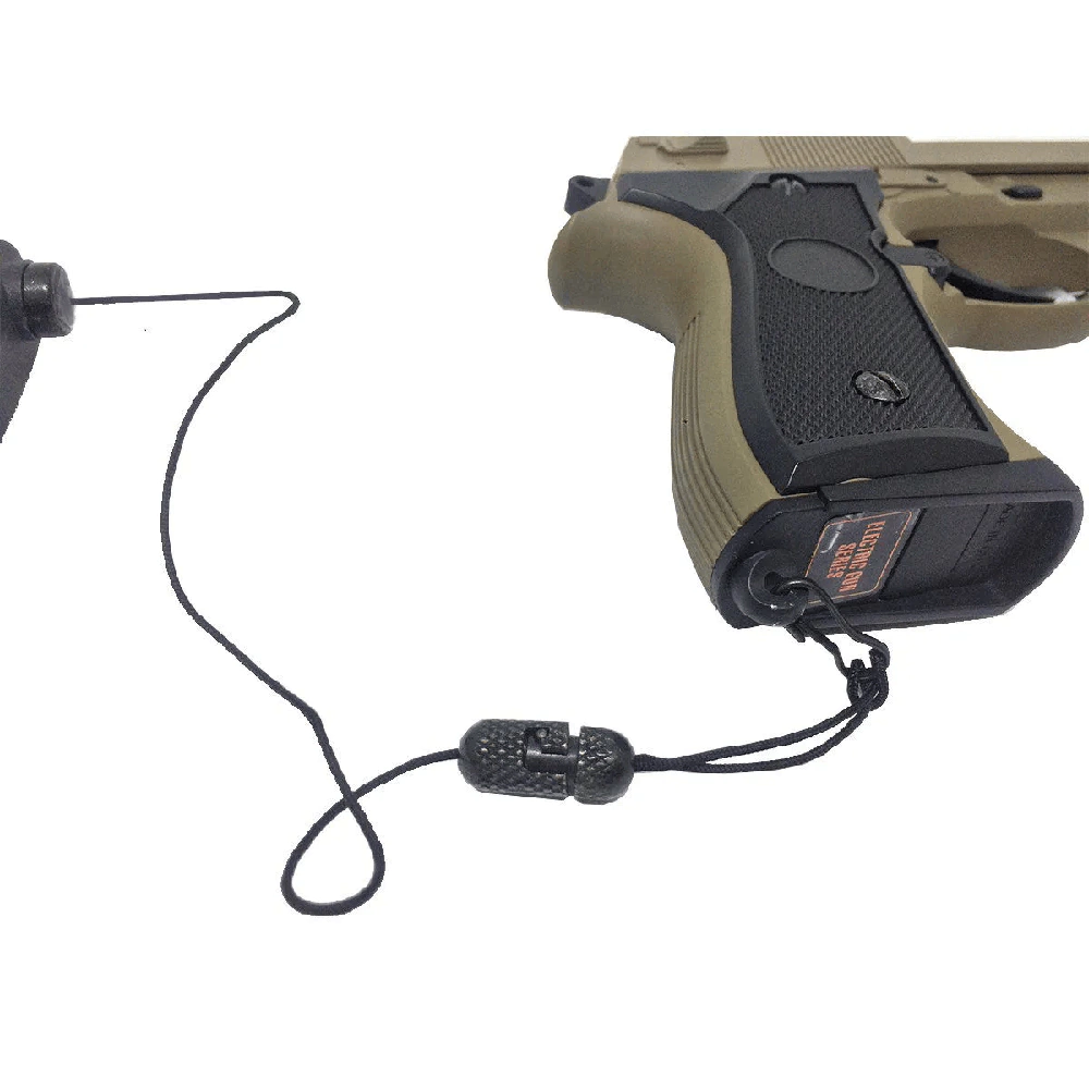 Limitador acoplado no cordão para travamento do mesmo em caso de queda da arma.